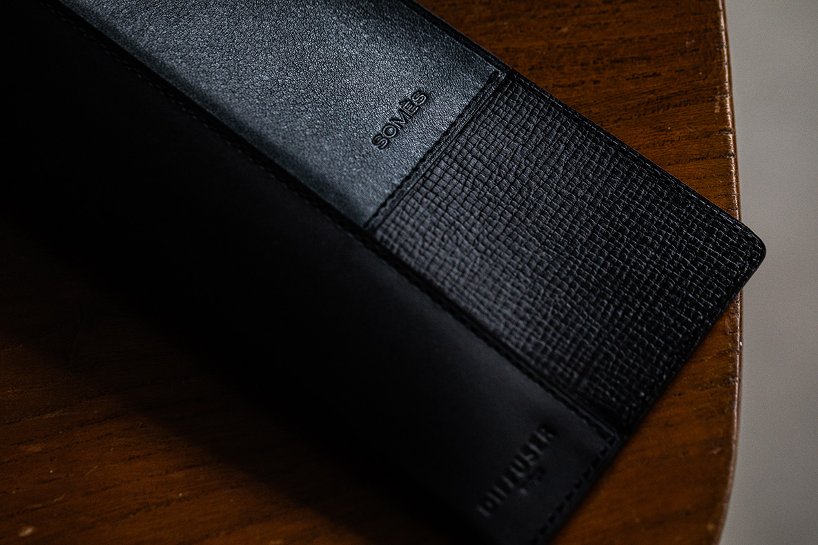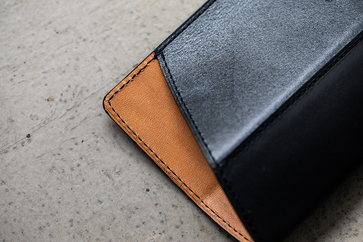 A handmade soft leather case created in collaboration with SOMÈS SADDLE. This model features a patchwork design combining three types of cowhide leather, with a luxurious backing of natural vegetable-tanned cowhide.