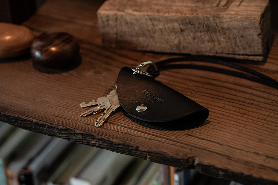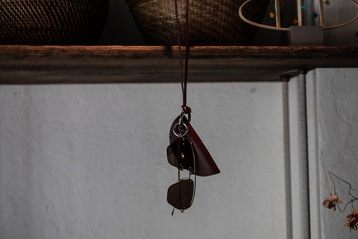The glass holder and key case, crafted from Italian leather. It’s a convenient glass holder and key case that can hold both your keys and glasses. It comes with a carabiner so you can attach it to your bag handle or belt loop. It’s made from Italian vegetable-tanned leather, which will age beautifully with use.